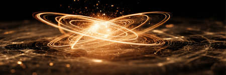 A visually appealing representation of quantum orbits and atomic particles in motion, conveying the complexity and beauty of atomic physics.