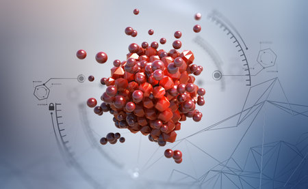 Microscopic View of Atom Interaction in Glowing Spheres During Scientific Research on Molecules