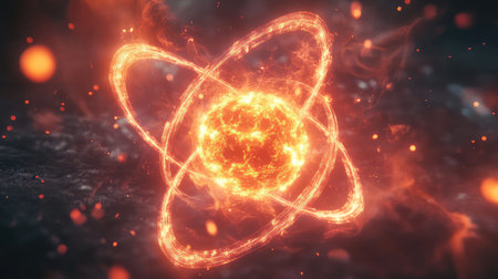 Energetic Atom Core with Glowing Orbits, Radiant Nucleus, and Vibrant Plasma Spheres in Motion