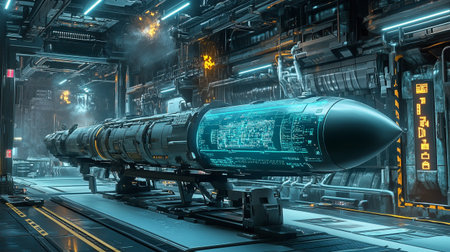 Dedicated engineers are working diligently in a stateoftheart aerospace manufacturing facility, where they are assembling a missile amid the latest advanced machinery and technology