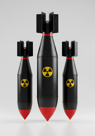 Three nuclear bombs isolated on white background. 3d render. Nuclear war concept