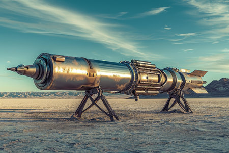 Futuristic missile on desert testing ground