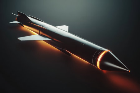 A sleek missile design showcases cutting-edge technology with glowing orange accents against a dark background.
