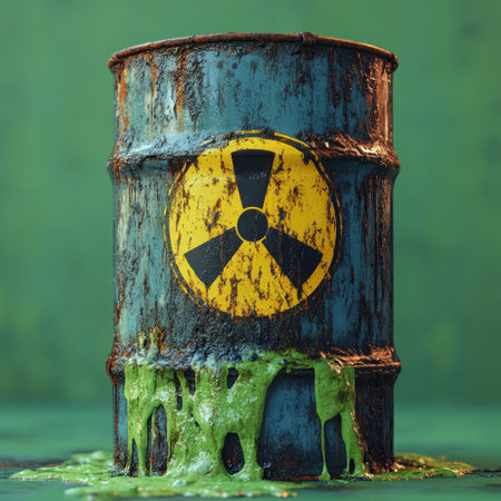 Intense closeup of nuclear waste, global environmental implications, stark image