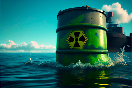 An AI generated illustration of nuclear toxic waste dumped at sea, contamination concept