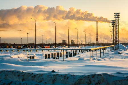 Industrial winter landscape with a view of industrial center