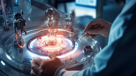 high-tech nanotechnology lab equipment close-up, created with generative ai