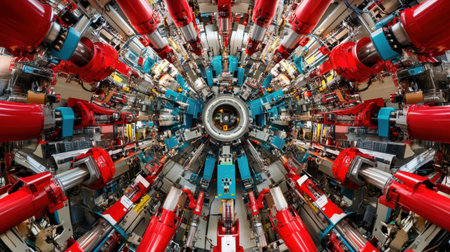 This close-up image showcases a vibrant and intricate array of industrial machinery components, highlighting advanced technology and engineering precision in a dynamic and colorful setting.