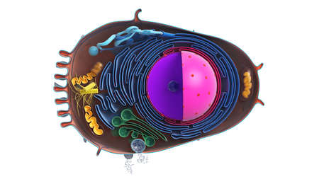 Internal structure of an animal cell, 3d rendering. Section view. Computer digital drawing.