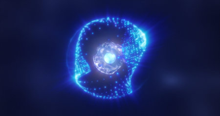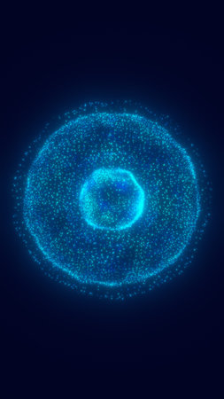 Abstract glowing blue sphere made of particles, symbolizing futuristic digital energy and microscopic structures.
