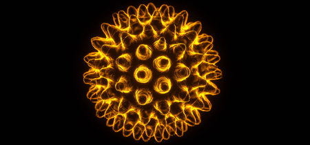 Orange Yellow Glowing Corona Virus Realistic Microscope Close Up Macro Covid-19 Bacteria Microbe Cell Pandemic Infectious Medical Respiratory 3D Rendering Illustration