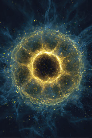 Cosmos and microbiome fusion featuring a sparkling sphere, ideal for background, AI generated