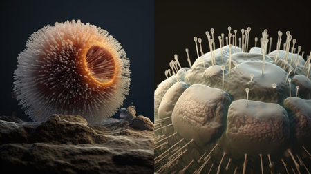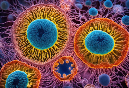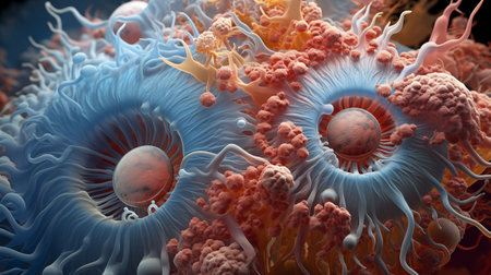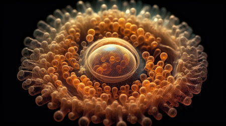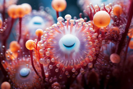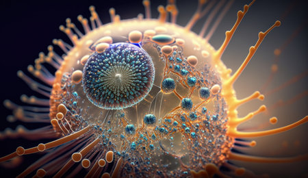 Colorful microorganism cells close up. illustration in high details for medical education and science. ai generative.