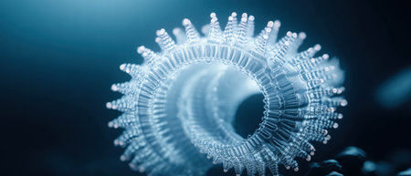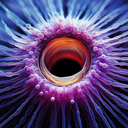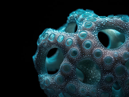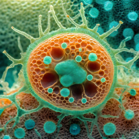 Vibrant Microscopic Algae Detailed Structure Colorful Aquatic Lifeform Art Teal Pink Blue Ocean