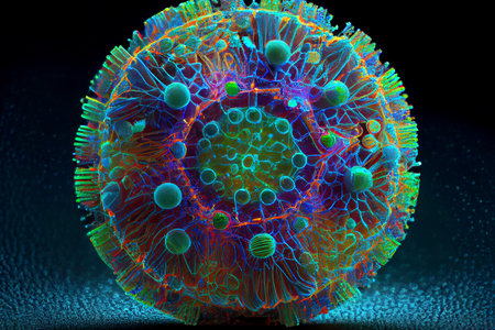 Colorful microorganism cells close up. illustration in high details for medical education and science. ai generative.