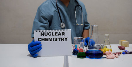 A healthcare professional demonstrate nuclear chemistry in a lab. scientific research concept