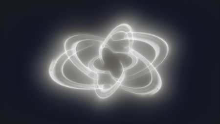 Glowing atomic model illustrates electrons orbiting a nucleus, highlighting scientific concepts of energy.