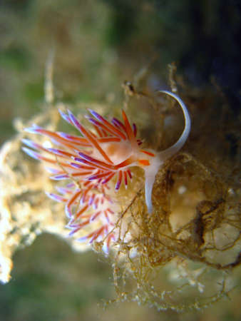 Nudibranch, Flabellina Cratena Peregrina in Mediterranean sea.