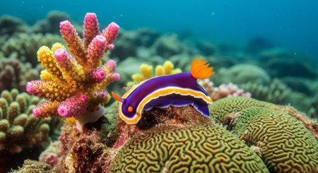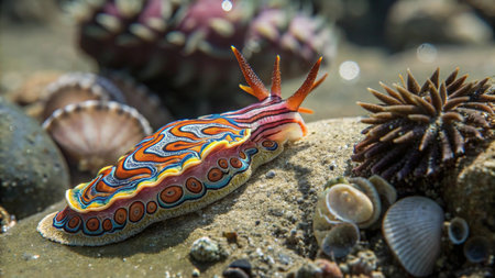 a close-up shot of a nudibranch crawling on a rock, created with generative ai