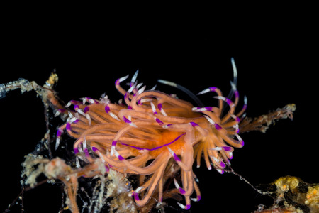 Red Nudibranch on black background on the coral reef of Anilao in the Philippines