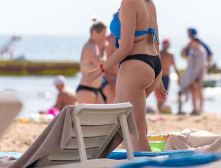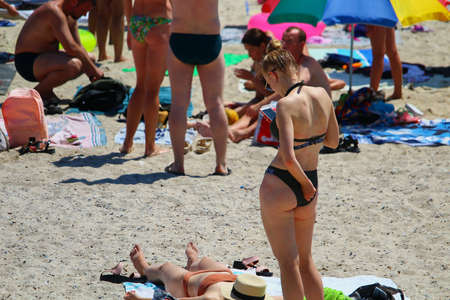 Odessa, Ukraine July 20, 2019, People on the city beach sunbathe in the midst of the tourist season . Editorial Use Only