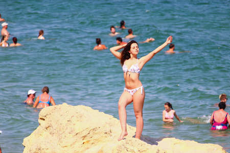 Tel Aviv Israel October 05, 2019 View of unknowns people having fun on the beach of Tel Aviv in the afternoon