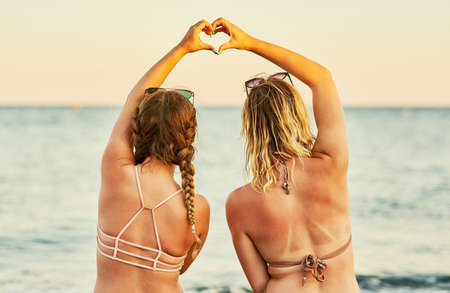 We share a love for the beach. Rearview shot of unrecognizable women at the beach.