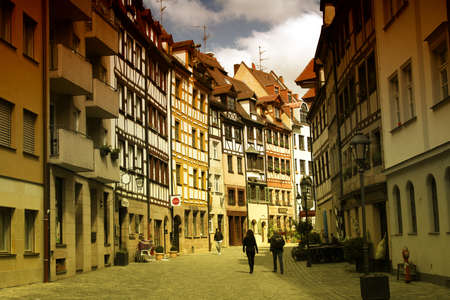 Old fachwerk half-timbered houses on Weissgerbergasse street in the historical center of Nuremberg, Germany. October 2014. High quality photo