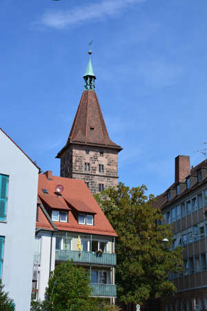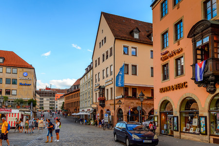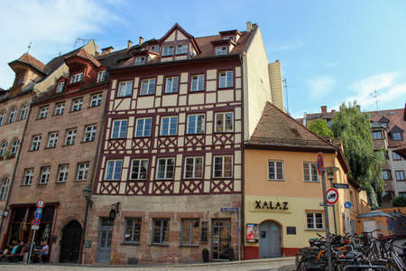 NUREMBERG, GERMANY - AUG 5, 2017: Architecture of Nuremberg, the largest in town in Franconia, Bavaria state, Germany