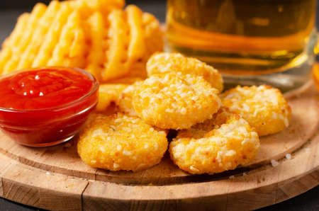 Close-up of chicken nuggets Fast food in batter. Meal preparation restaurants and cafes. Classic American cuisine concept.