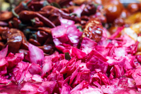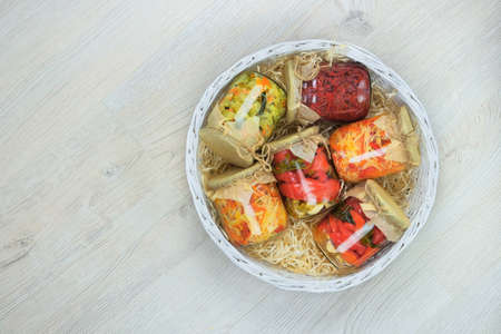 Fermented preserved vegetables. Fermented preserved vegetarian and pickled food concept