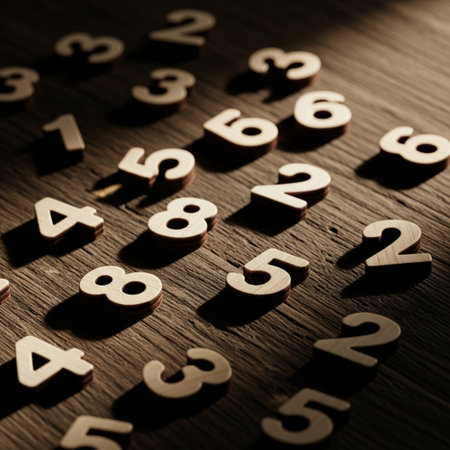 colorful wooden numbers on a old wooden background