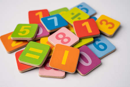 Math number colorful on white background, education study mathematics learning teach concept.