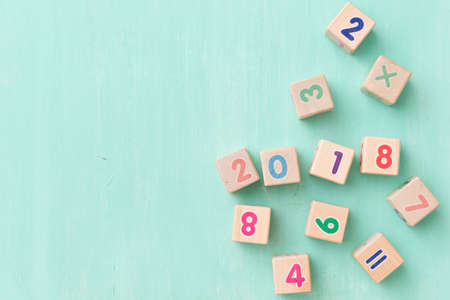 wooden cubes with numbers on a white background. Education and learning concept. 2017 school year.