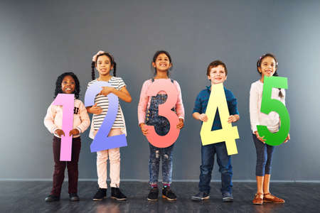 You can count on us. Studio shot of a young kid against a grey background.