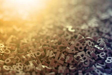 Mathematics background made with solid numbers on a board. Isolated on yellow