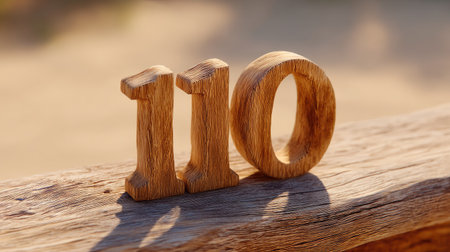 A closeup of number 110 carved in rustic wood, showcasing natural textures and warm tones, evoking sense of craftsmanship and nature beauty