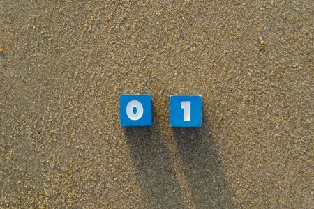 Number zero and one on sand.