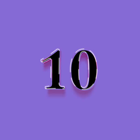 Number 10 with shadow isolated on purple background. 3d render.