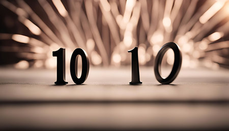 Close-up photo of the number 10 against a blurred golden background. The number is a symbol of a milestone, anniversary or achievement. The golden bokeh lights evoke warmth and celebration.