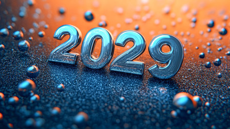 Silver 2029 Numbers on Glitter Background, Happy New Year, Festive Celebration Concept.