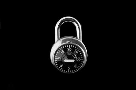 Combination lock on black isolated
