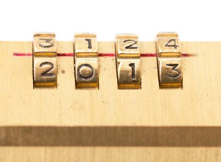 Combination padlock on white background with focus on numbers