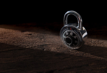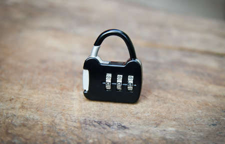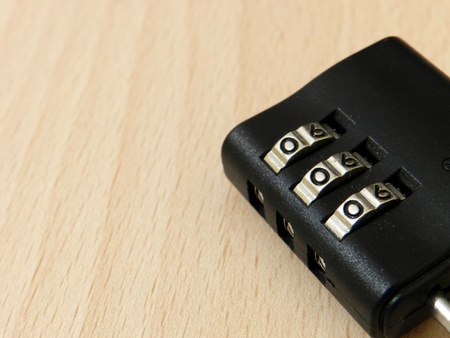 combination lock on old wooden table