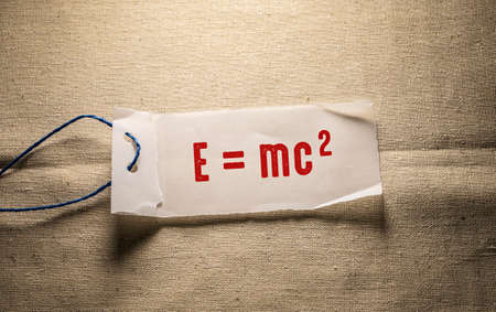 Albert Einsteins famous matematical equation e=mc2 written on a chalkboard.