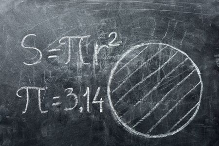 PI day concept. Drawings of circles and formula with the number PI written on a blackboard
