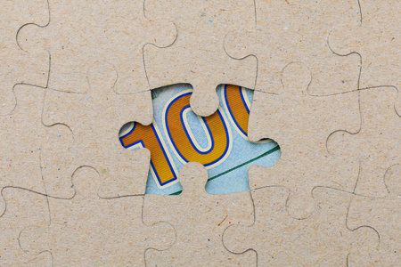 Missing puzzle piece and framed US dollars. Background with copy space for text