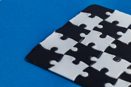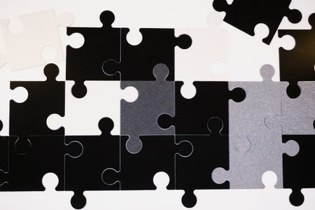 Black and white puzzle, teamwork challenge concept