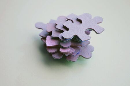 Stack of violet puzzle close-up on a gray background
