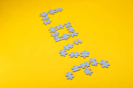 A set of puzzles, the process of collecting in a large pattern. Teamwork and problem solving, concept.